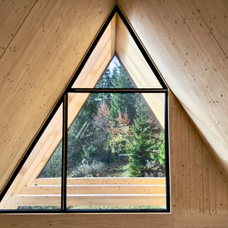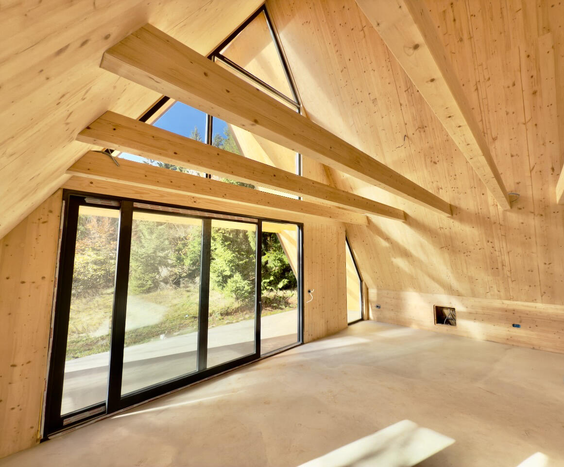 Redefinirana A-frame arhitektura predstavlja i prvi primjer takve arhitekture izvedene u CLT (cross laminated timber) tehnologiji u Hrvatskoj. Rezultat je spoj napredne drvene konstrukcije i suvremenog dizajna.Ove jedinstvene planinske kuće oblikovane su kao prozračni, svjetlom ispunjeni volumeni. Velike južne staklene stijene brišu granicu između gotovo osam metara visokog interijera i šume.Unutrašnjost je u potpunosti od punog drva koje istodobno nosi konstrukciju i oblikuje završnu površinu zidova i stropova.Kuće uspješno funkcioniraju na dvije razine – kao planinska utočišta koja karakterizira mir i spokoj, te kao suvremeni dom koji pruža sve udobnosti modernog života.
