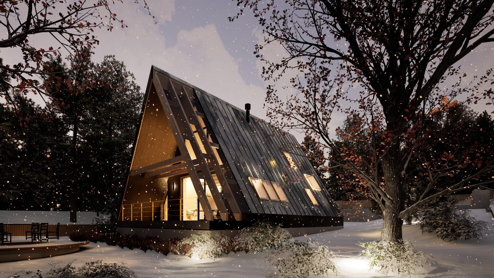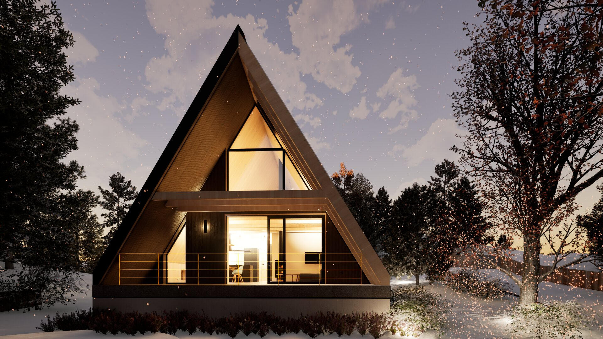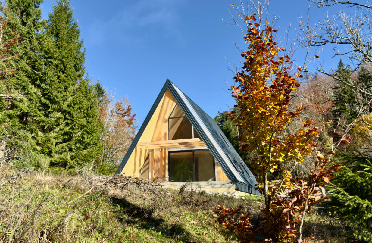 Redefinirana A-frame arhitektura predstavlja i prvi primjer takve arhitekture izvedene u CLT (cross laminated timber) tehnologiji u Hrvatskoj. Rezultat je spoj napredne drvene konstrukcije i suvremenog dizajna.Ove jedinstvene planinske kuće oblikovane su kao prozračni, svjetlom ispunjeni volumeni. Velike južne staklene stijene brišu granicu između gotovo osam metara visokog interijera i šume.Unutrašnjost je u potpunosti od punog drva koje istodobno nosi konstrukciju i oblikuje završnu površinu zidova i stropova.Kuće uspješno funkcioniraju na dvije razine – kao planinska utočišta koja karakterizira mir i spokoj, te kao suvremeni dom koji pruža sve udobnosti modernog života.